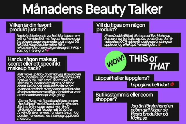 I KICKS Beauty TALKS vill vi lyfta engagemang, inspiration och gemenskap. Därför introducerar vi Månadens Beauty Talker 💬